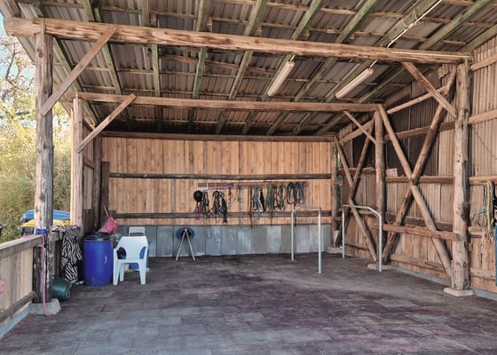 Aber nicht nur das; wir können auch das ein oder andere Reiterherz höher schlagen lassen. Sowohl einen großen Roundpen mit 20 Meter Durch-messer, als auch einen 20 x 40 Meter großen Reitplatz bieten Ihnen und Ihrem Pferd beste Trainingsmöglichkeiten.
